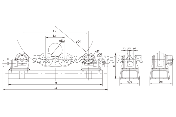 根據工件直徑大小自動調節滾輪組的擺動,無須人工調節。組合式滾輪,承載能力大,驅動能力強。根據驅動方式可分為單驅動、雙驅動兩種形式。